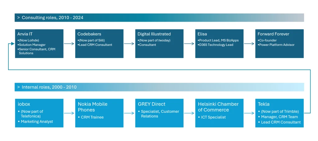 - Designing learning paths for competence development, training and supporting consultants, setting roadmap targets, developing commercial offering, partner coordination.